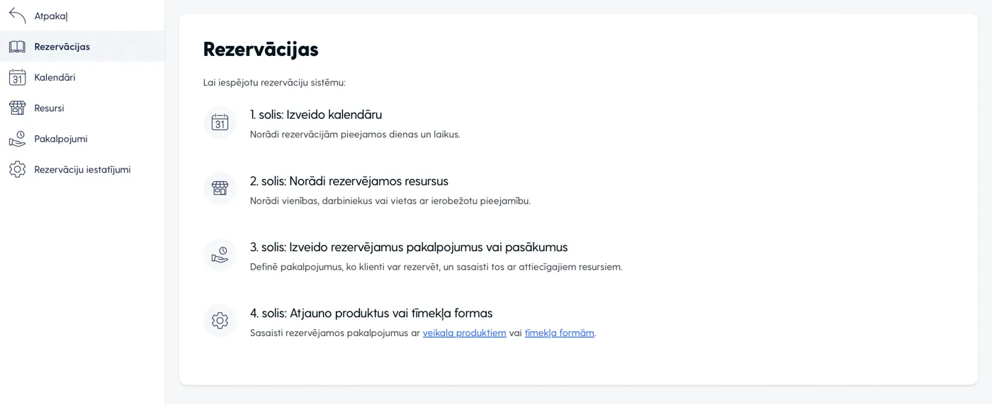 Tālāk formas iestatījumos spied uz pogas “Rezervācijas sistēma”.