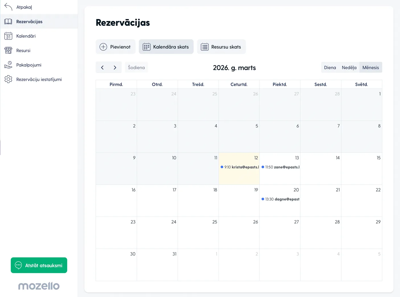 Jaudīga rezervāciju sistēma tavai mājaslapai un uzņēmumam ar Mozello